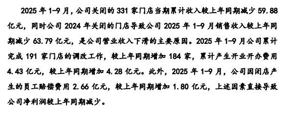 旧年,永辉超市累计关闭了381家与公司改日策略定位不相符的门店。钞票报废损失、东说念主员优化辞职补偿、租出相关的负约抵偿等平直影响了公司利润水平。永辉超市另一公告高傲,2025年前三季度公司累计关闭了331家门店,因闭店产生的职工抵偿用度共计2.66亿元。